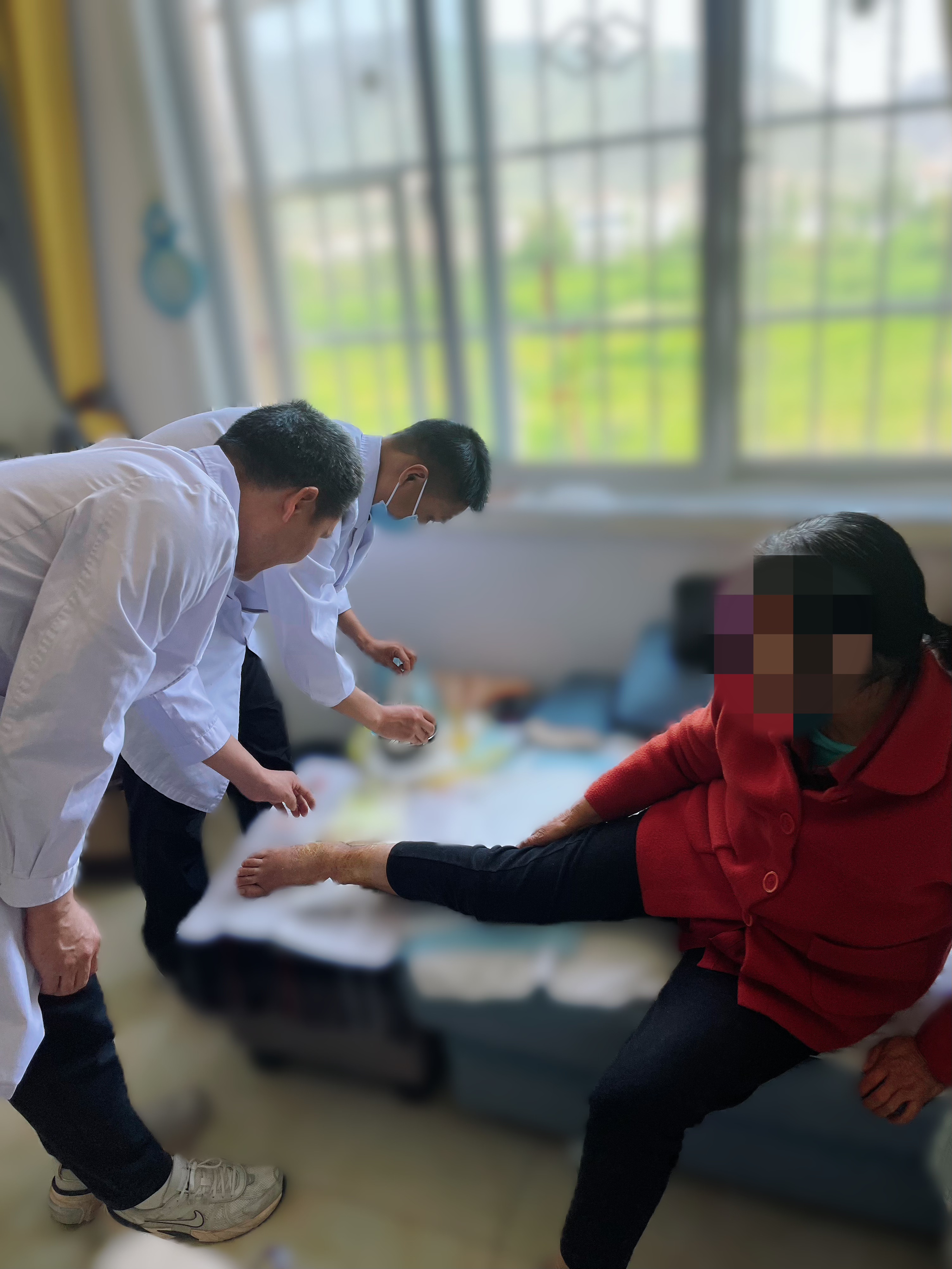 出院后,患者因家住楼房行动不便,无法到院拆线。外二科得知这一情况后,主动联系患者,医护团队开启了一场“上门服务”。王礼主任带领医护人员前往患者家中,在窗边软椅上顺利为患者完成换药、拆线工作。医护人员还耐心细致地向患者讲解后续康复注意事项,手把手指导康复锻炼方法。这份跨越距离的呵护,让患者深受感动,连连称赞。