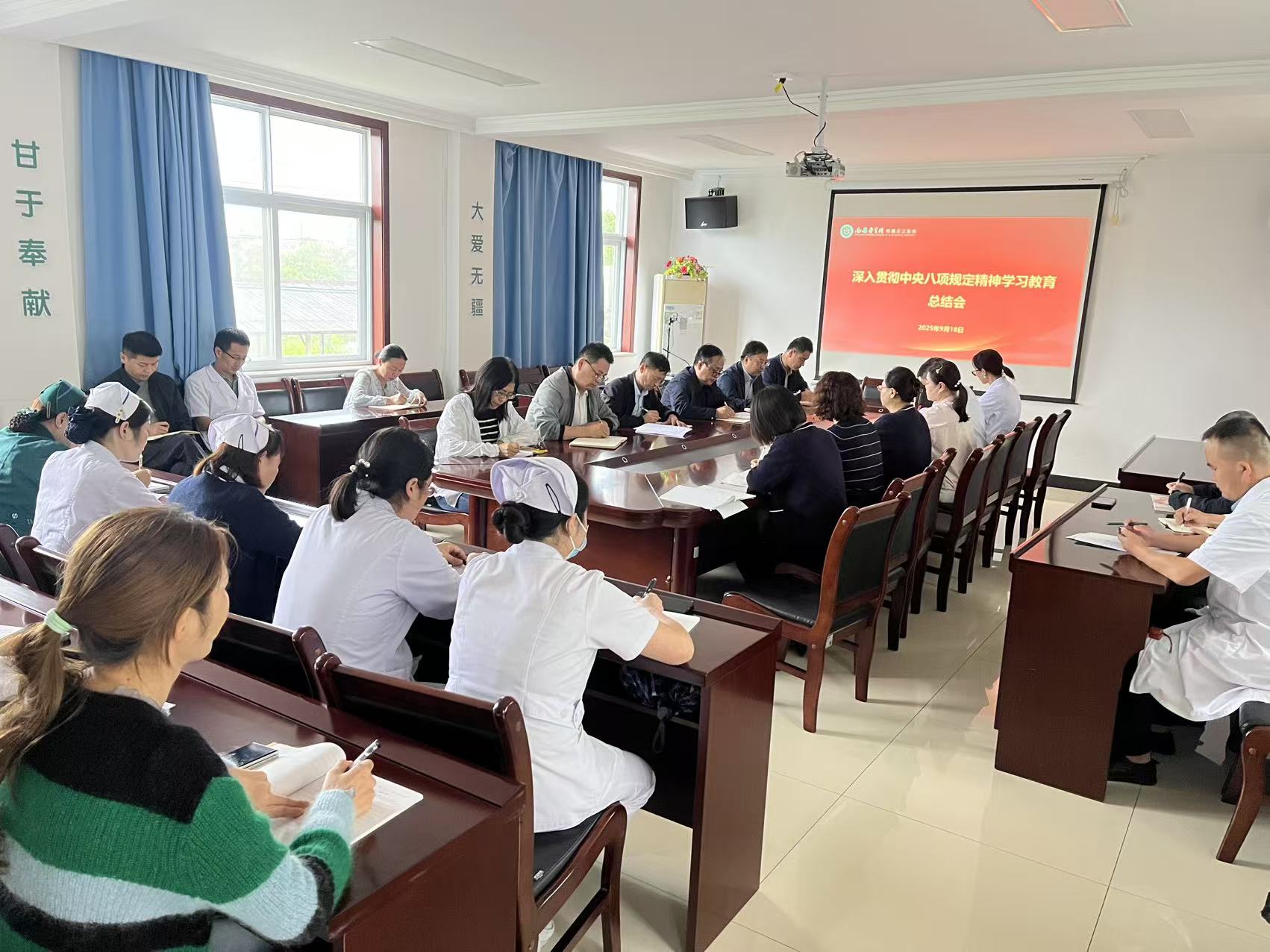 9月18日,我院召开深入贯彻中央八项规定精神学习教育总结会,传达学习中央党的建设领导小组、省委常委会会议暨党的建设工作领导小组会议精神,总结医院深入贯彻中央八项规定精神学习教育开展情况,部署下一阶段重点工作。党委书记杜建军主持会议并讲话。全体党委委员出席会议。各党支部书记,科主任、护士长参加会议。