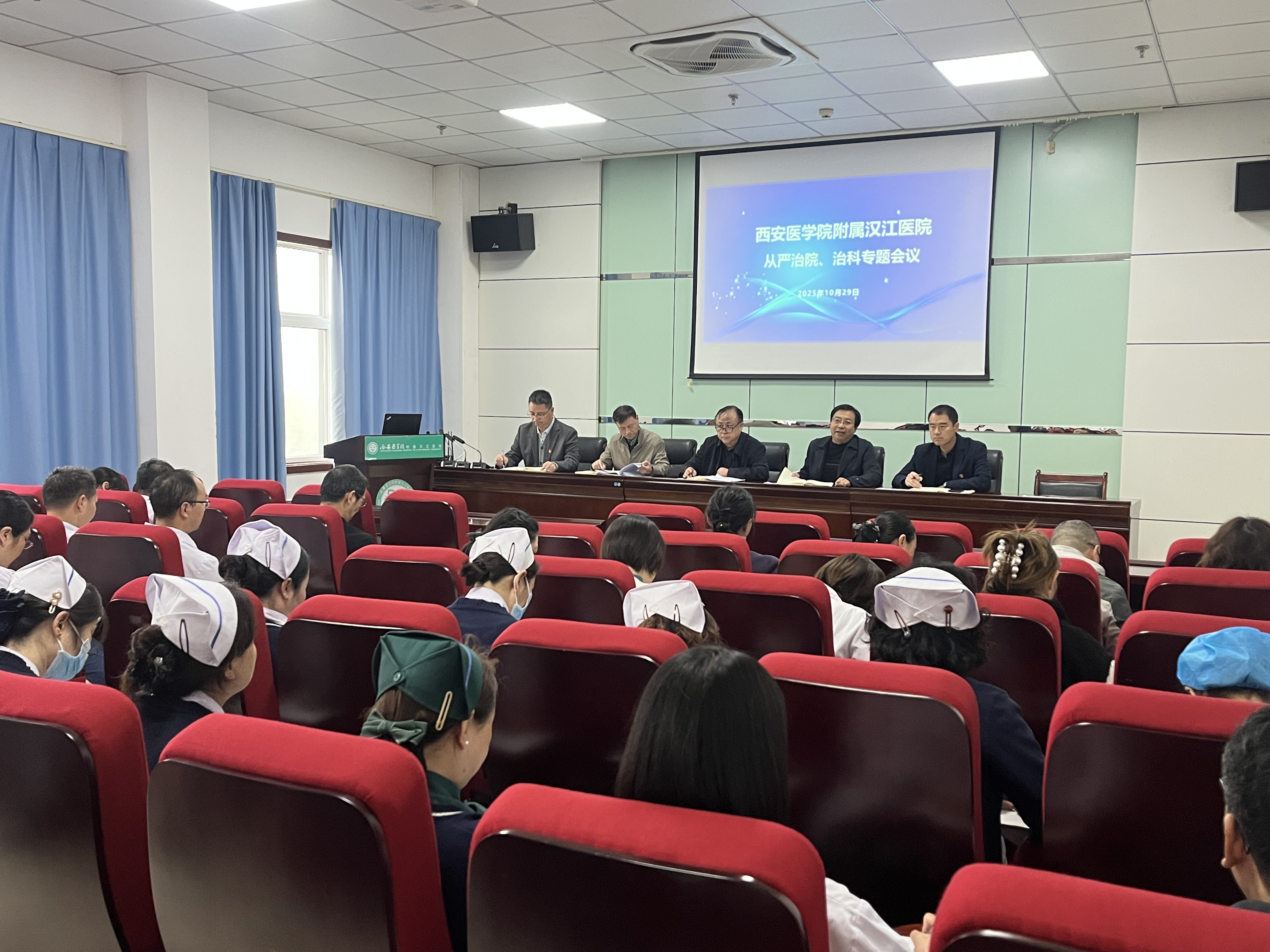为深入贯彻落实全面从严治党要求,持续深化清廉医院建设,筑牢医德医风防线,锤炼过硬工作作风。结合学校余立平书记,巩守平副书记、校长在附属医院 2025 年第一学期工作总结暨第二学期工作部署会上的讲话要求,10月29日,附属汉江医院召开从严治院专题会议。医院领导班子成员、中层干部、护士长及临床医技科室医生代表参加会议,会议由院长李凯主持。