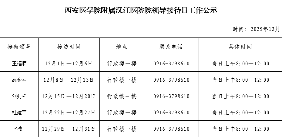 - 西安医学院附属汉江医院院领导接待日工作公示