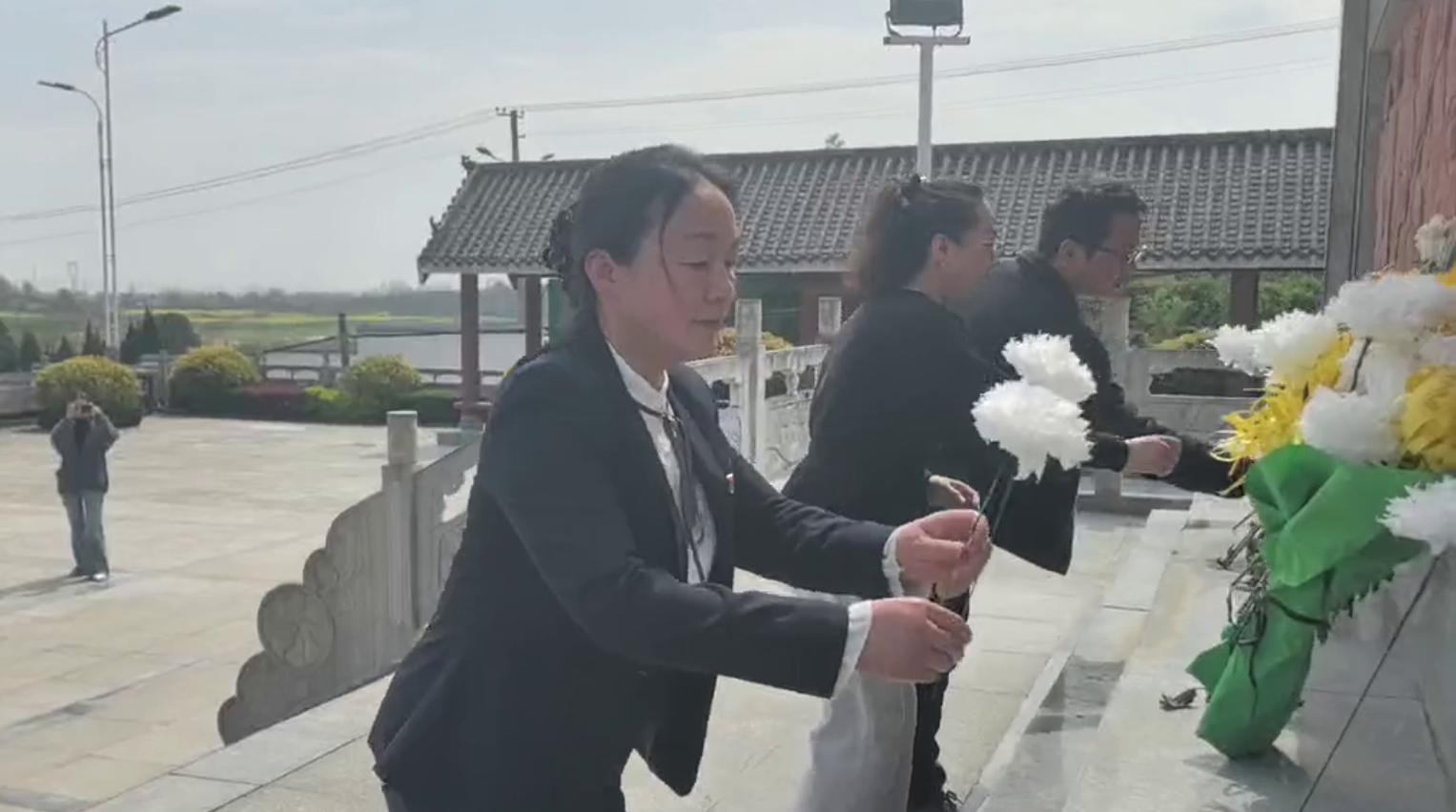 在庄严肃穆的烈士陵园,全体党员身着正装、佩戴党员徽章,整齐列队,神情肃穆。大家向革命烈士纪念碑行注目礼、默哀致敬,深切缅怀为国家独立、民族解放和人民幸福英勇献身的革命先烈。随后,党员们依次将亲手制作的纸菊花敬献于纪念碑前,用最朴素的方式,表达最深的敬意。