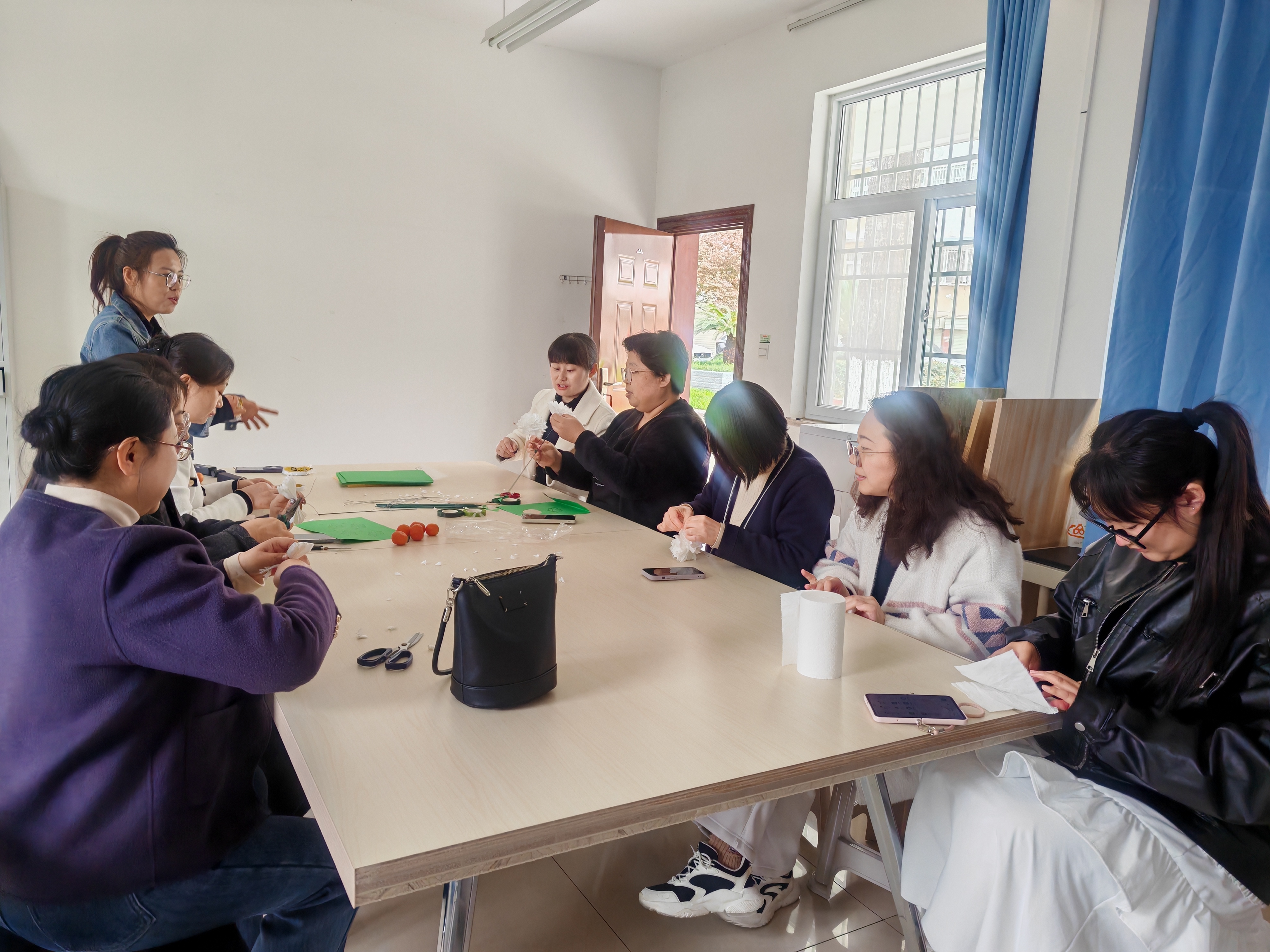 活动前期,支部党员们围坐一起,亲手制作素雅的纸菊花。折纸、塑形、粘贴……大家将对先烈的崇敬与缅怀之情,一点一点融入指尖。每一朵手工菊花,都承载着党员们的赤诚之心,也让这次祭扫更具温度与特殊意义。