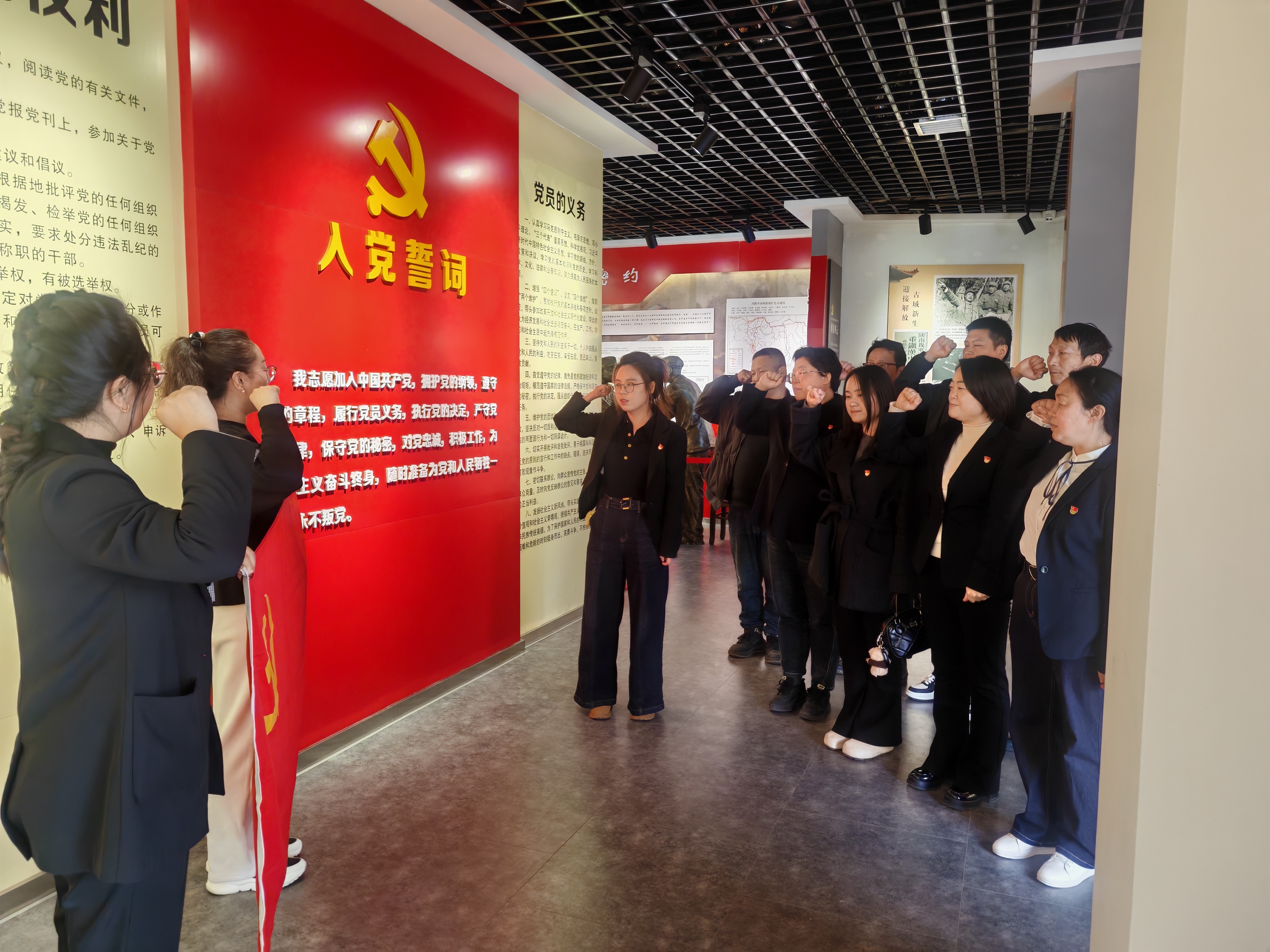 仪式结束后,党员们有序走进革命纪念馆。在历史照片、珍贵文物和影像资料的见证下,全体党员面对鲜红的党旗,庄严重温入党誓词。铿锵有力的誓言在纪念馆内回荡,与峥嵘岁月隔空交汇,让理想信念更加坚定,责任担当更加明晰。