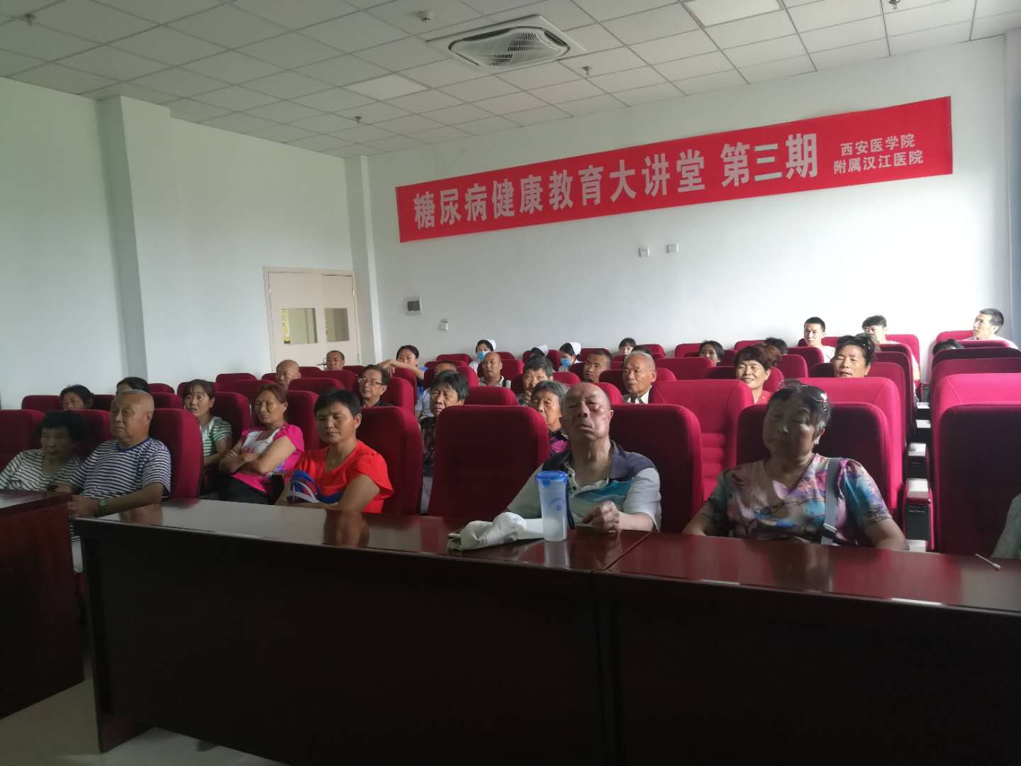 2018年6月28日下午十五点,在西安医学院附属汉江医院五楼多功能厅,由医教部和内一科共同举办的糖尿病健康教育大讲堂第三期讲座如期开始。虽然天气炎热,丝毫阻挡不了糖友们学习的热情,整个多功能厅座无虚席。