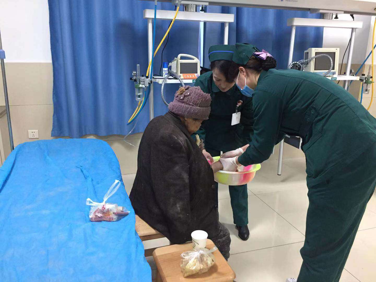 老人在急诊科医护人员的照管下度过了6个小时,我们轮流看护、搀扶入厕、嘘寒问暖,老人精神逐渐好转,最终我们联系上了政府部门,把老人接到了民政部门,老人总算有了一个归宿。