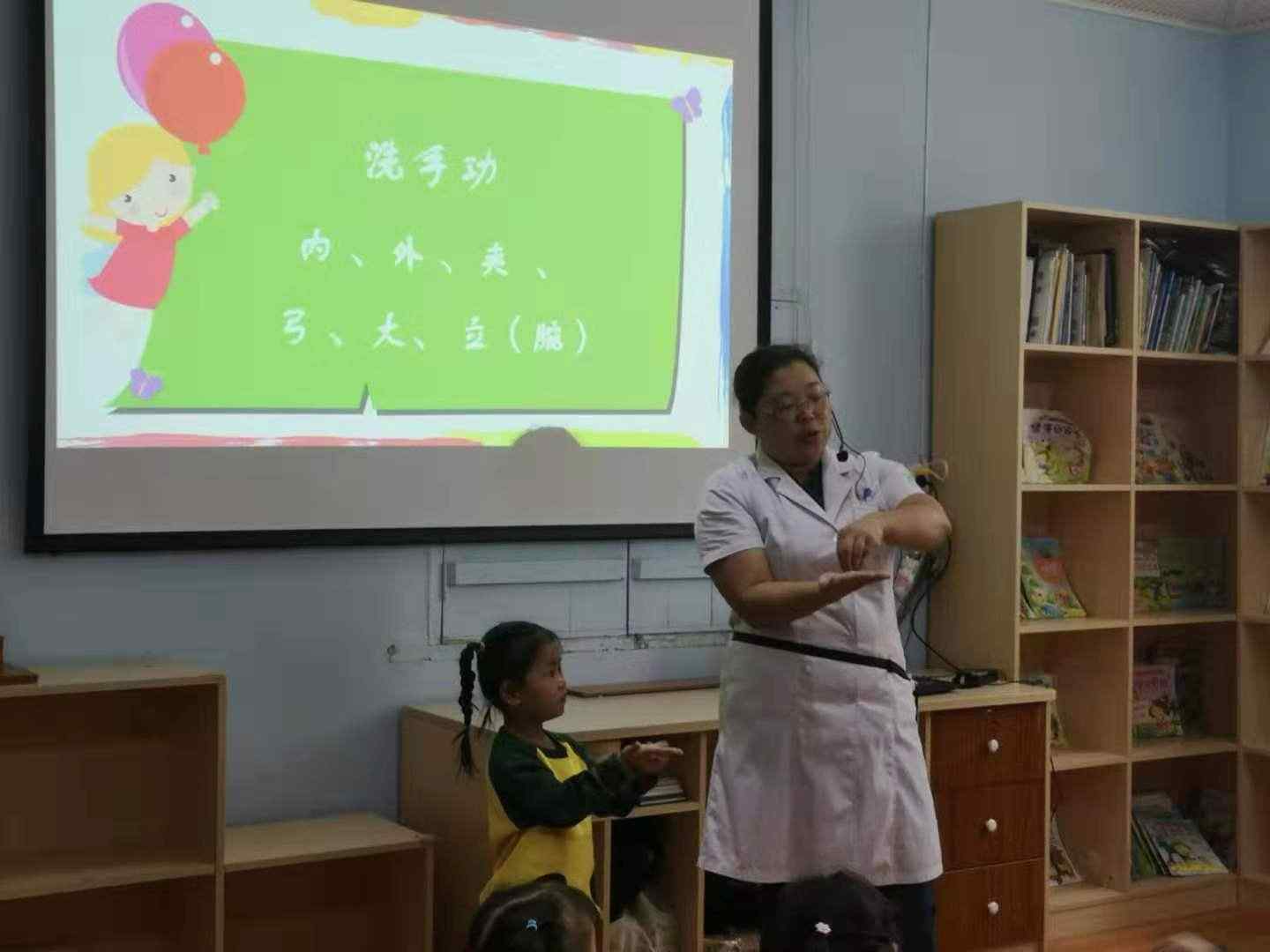 张辉护士长和医护人员在寓教于乐中,通过问问题、做示范,和小朋友们开展互动,将规范“七步洗手法”一步一步的演示给幼儿园的孩子们,孩子们兴致勃勃,掌握的很快。最后,为幼儿们发放了精心准备的文具。