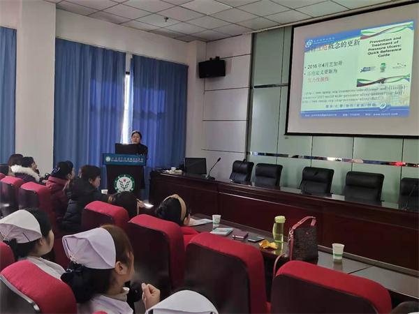 为进一步深化优质护理服务工作,提高临床护理服务质量,有效地降低和预防压力性损伤事件的发生,12月26日下午,我院护理部组织开展“压力性损伤相关知识”专题讲座,本次讲座特邀汉中市中心医院伤口造口护理诊室专科护士、国际造口治疗师(ET)惠蓉老师授课,略阳天津医院、洋县医院护理同仁、我院各科护士长、护理骨干等40余人参会。