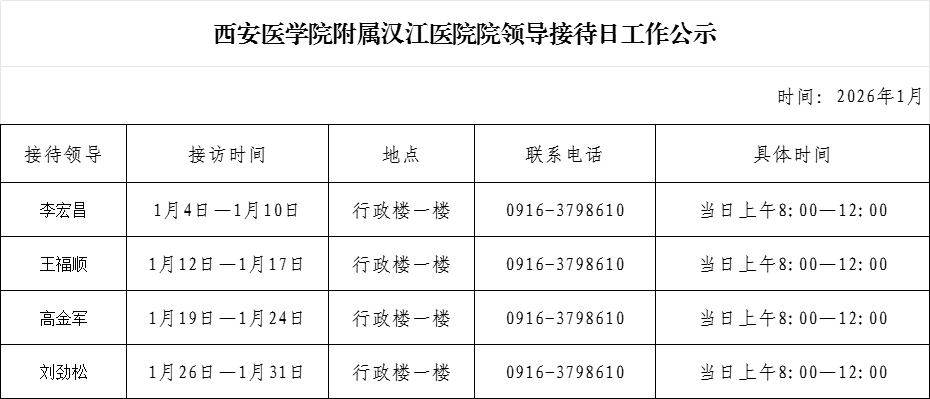 西安医学院附属汉江医院院领导接待日工作公示1月